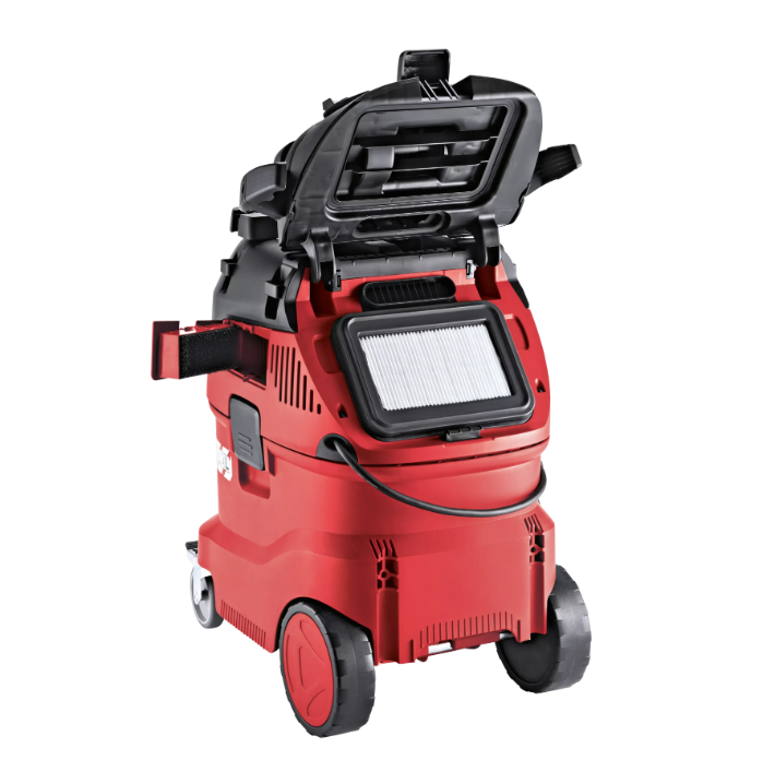 - Konstant hohe Saugleistung durch laufendes automatisches Abreinigen des Filters.