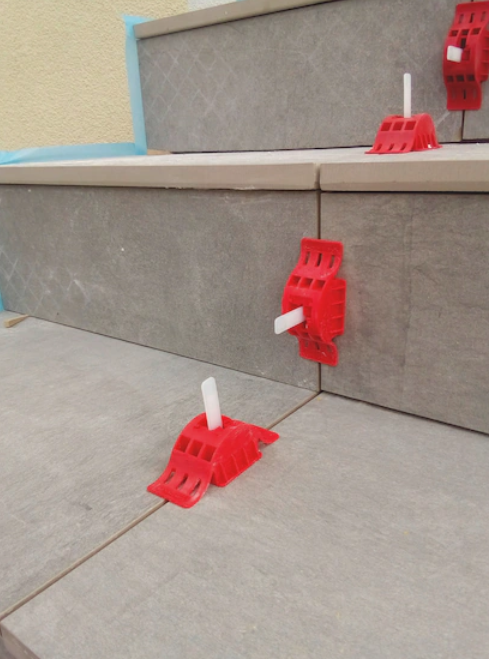 - Durch das exakte Ausrichten der Fliesen wird ein Absenken vermieden, ein hoher Grad an Gleichmäßigkeit gewährleistet, sowie Zeit gespart.