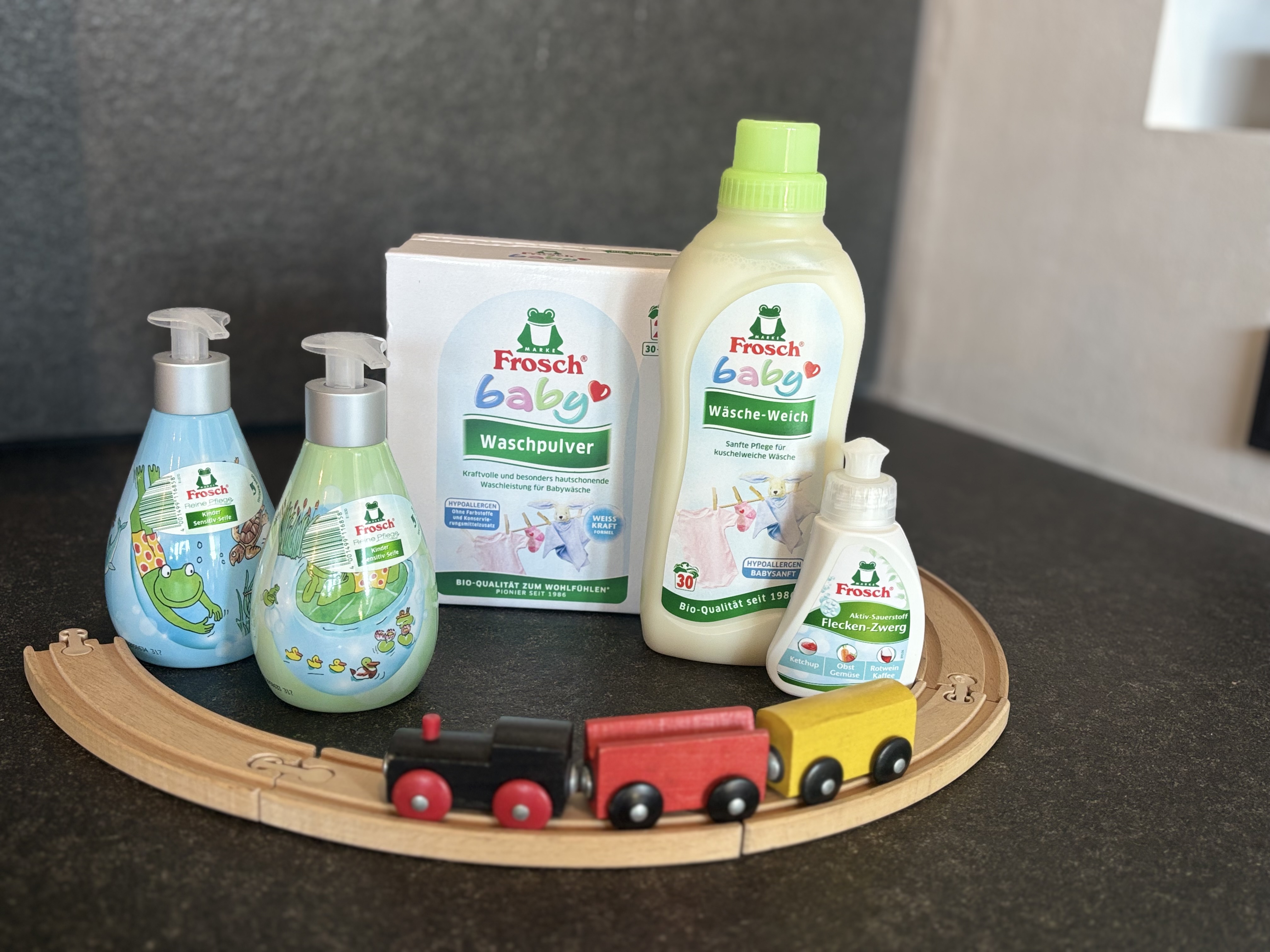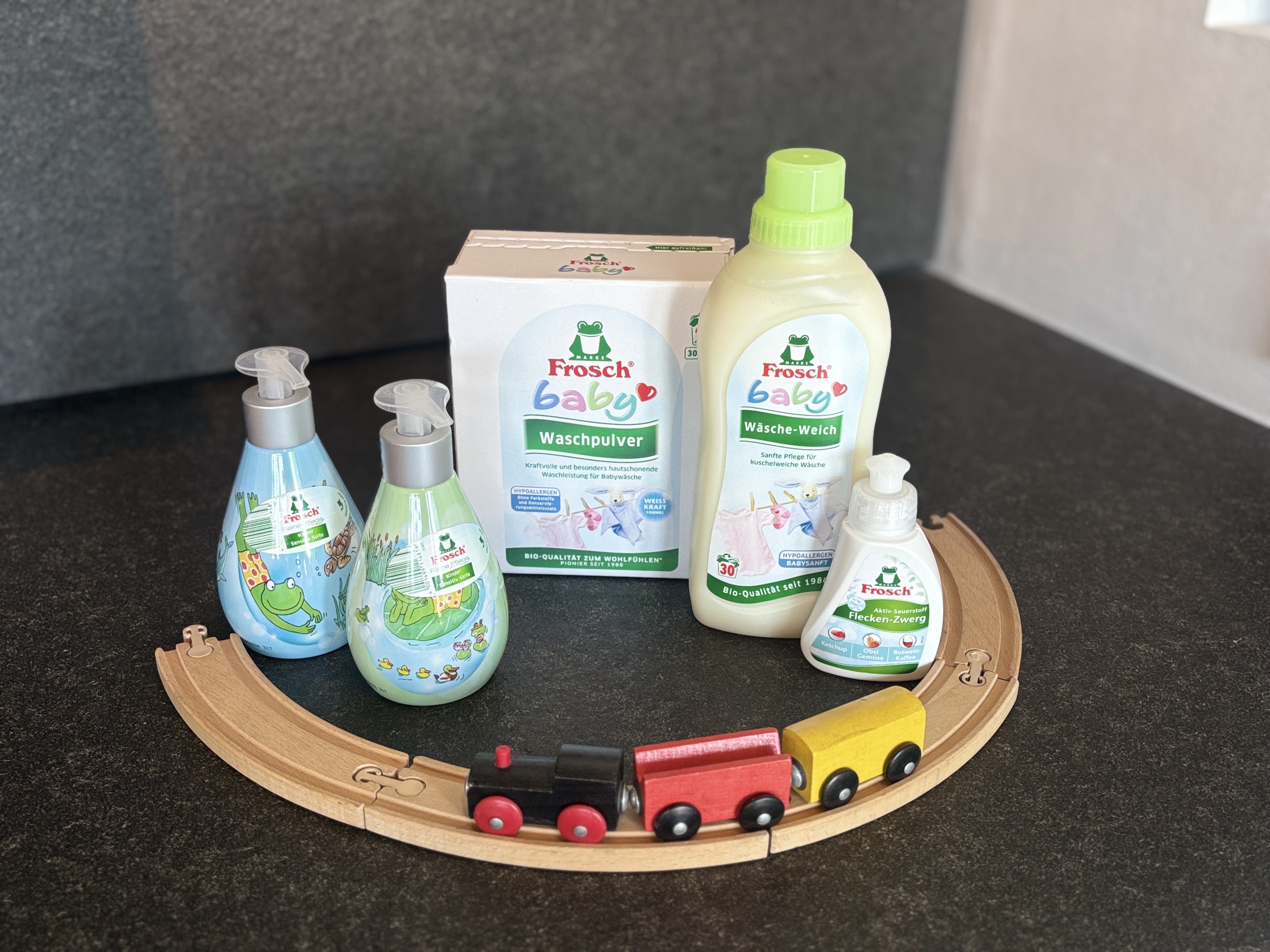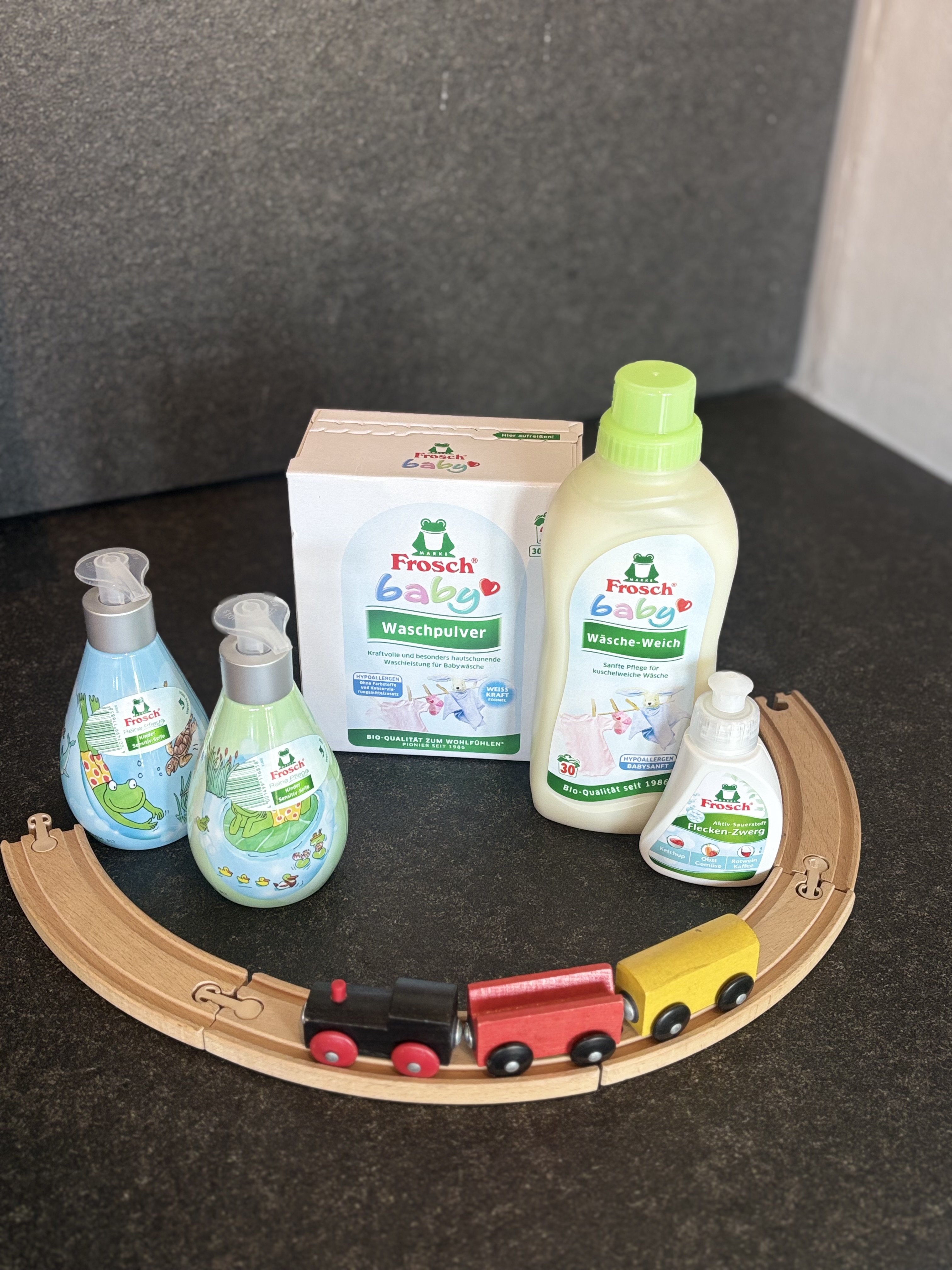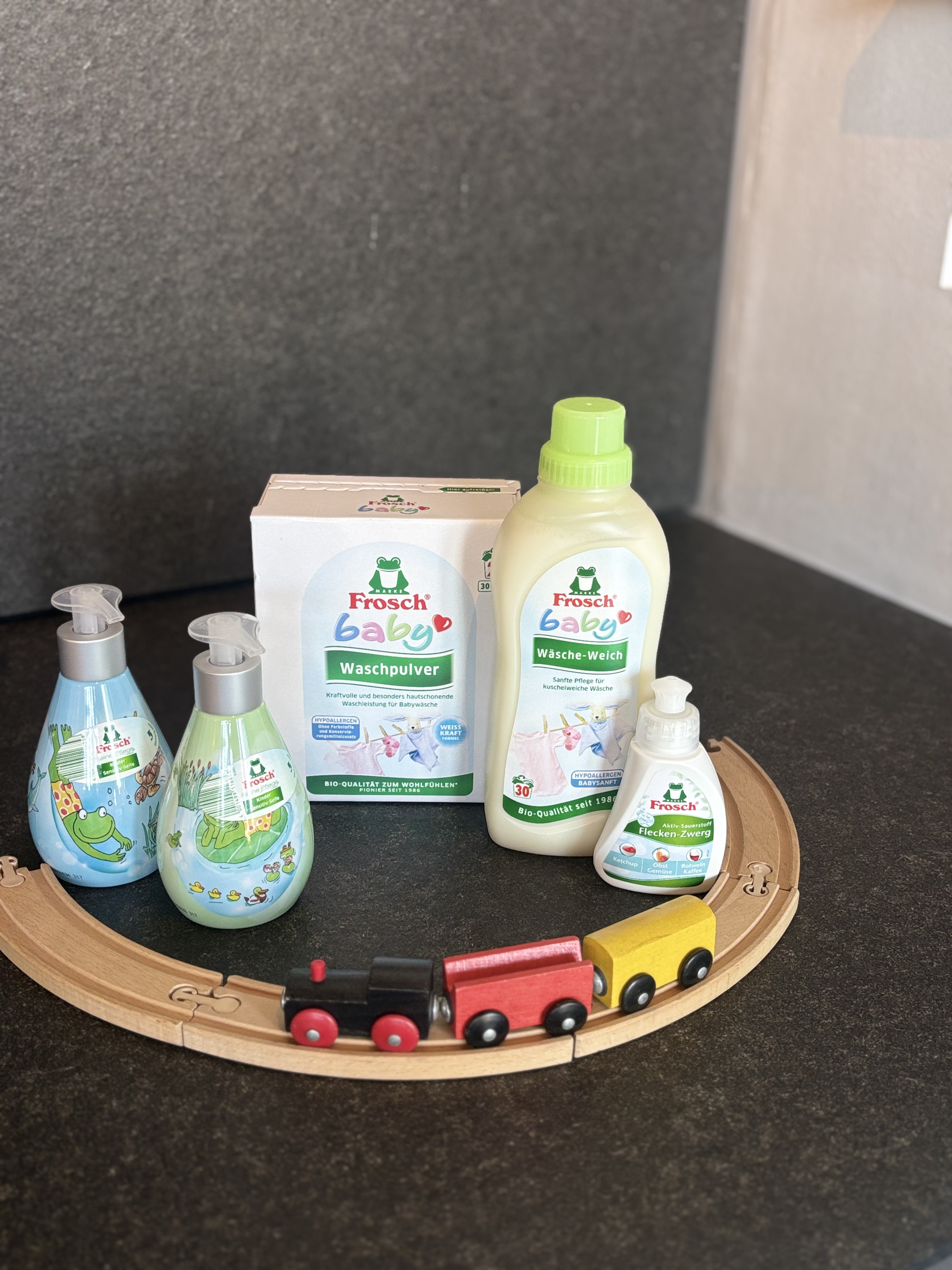 Pflege mit Verantwortung: Dieses Frosch-Bundle ist die perfekte Grundlage für eine liebevolle und umweltbewusste Babypflege - vom Waschen bis zur Fleckenentfernung.
