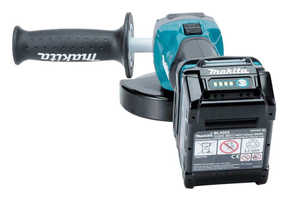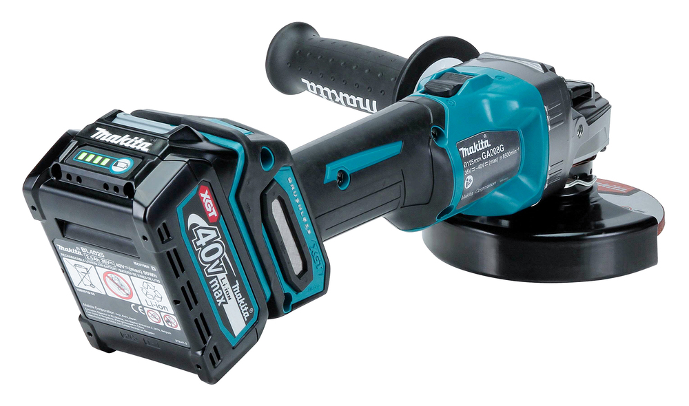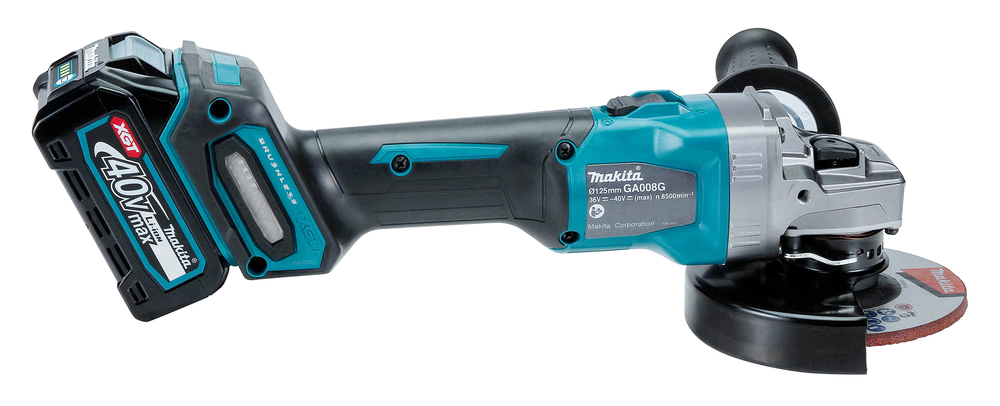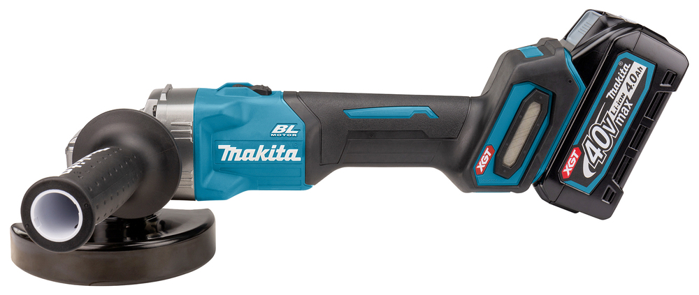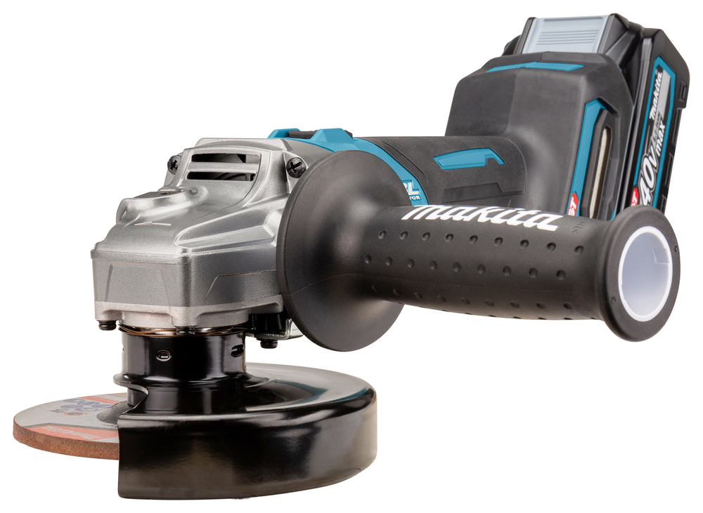 Leistungsstarker 40V max. Akku-Winkelschleifer für schwere Trenn- und Schrupparbeiten. Die AFT-Technologie minimiert den Rückschlag der Maschine bei blockierendem Werkzeug. Das XPT Schutzsystem verhindert das Eindringen von Schmutz und Spritzwasser.