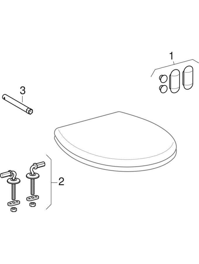 - Scharnierfussbefestigung am Sitz mit: in den Deckel gesteckte Stifte