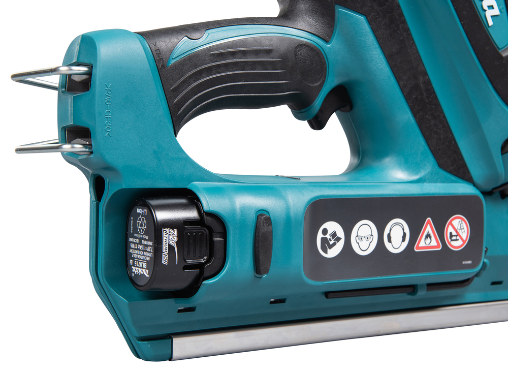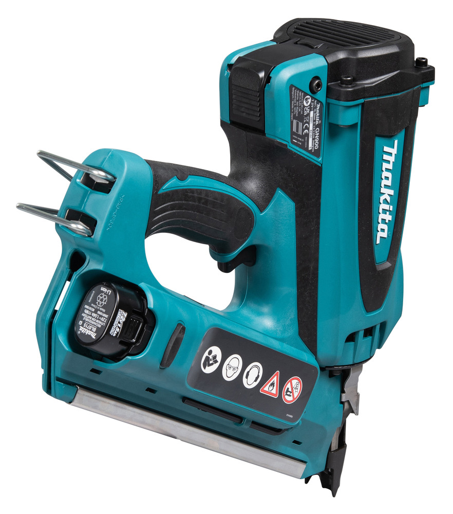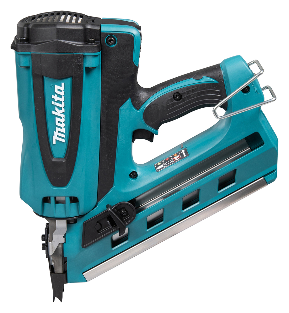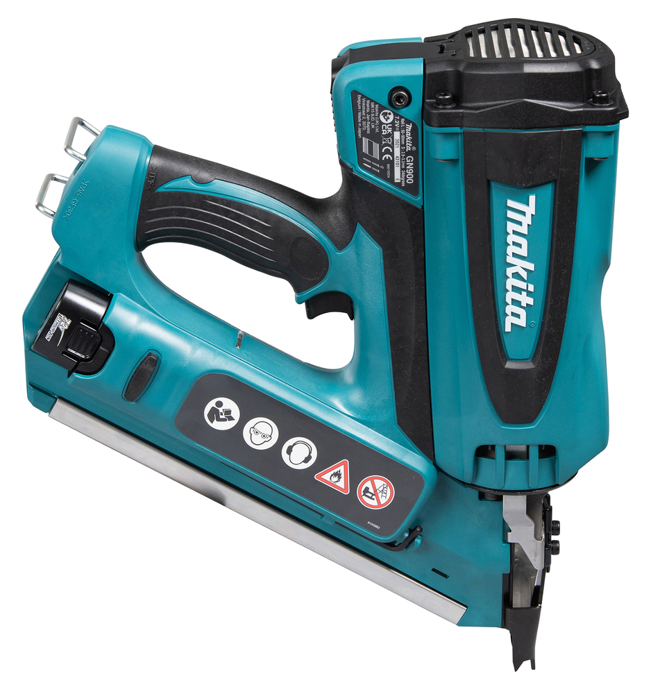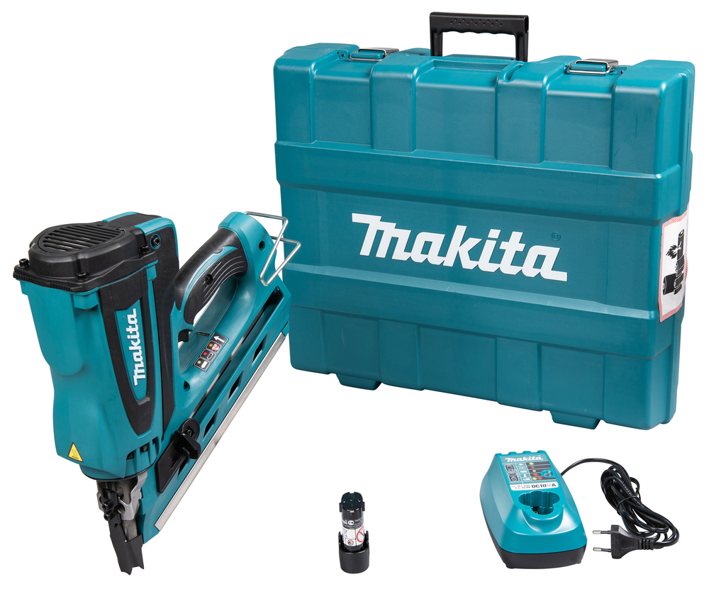 Eine 7,2 V Gas-Streifennagelpistole. Schnell und benutzerfreundlich, weil keine Schläuche oder Kompressoren benötigt werden. Kompatibel mit Clipped Head 34° Tape-Bond-Nägeln, mit einer Nagelleistung von 90 mm. Gaskartusche nicht inbegriffen.