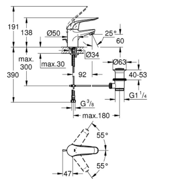 Produktinformationen "GROHE EH-WT-Batterie Euroeco Special 32763 Zugstangen-Ablaufgarnitur chrom "