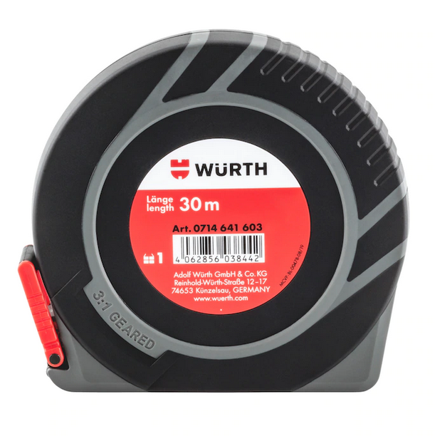 1xKapselbandmaß Stahl mit 3:1 Kurbelübersetzung für ein dreimal schnelleres Einziehen des Bandes