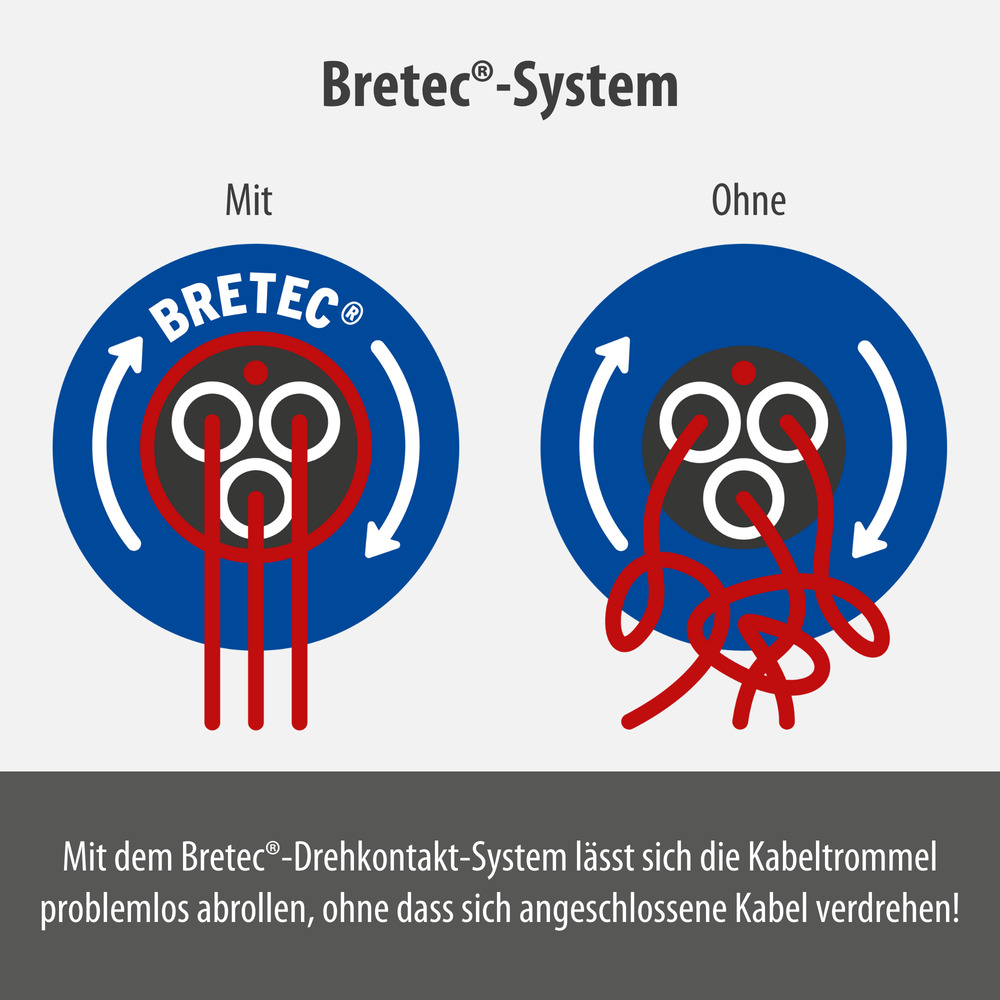 dem Bretec-Drehkontakt-System dreht sich die Kabeltrommel, ohne dass