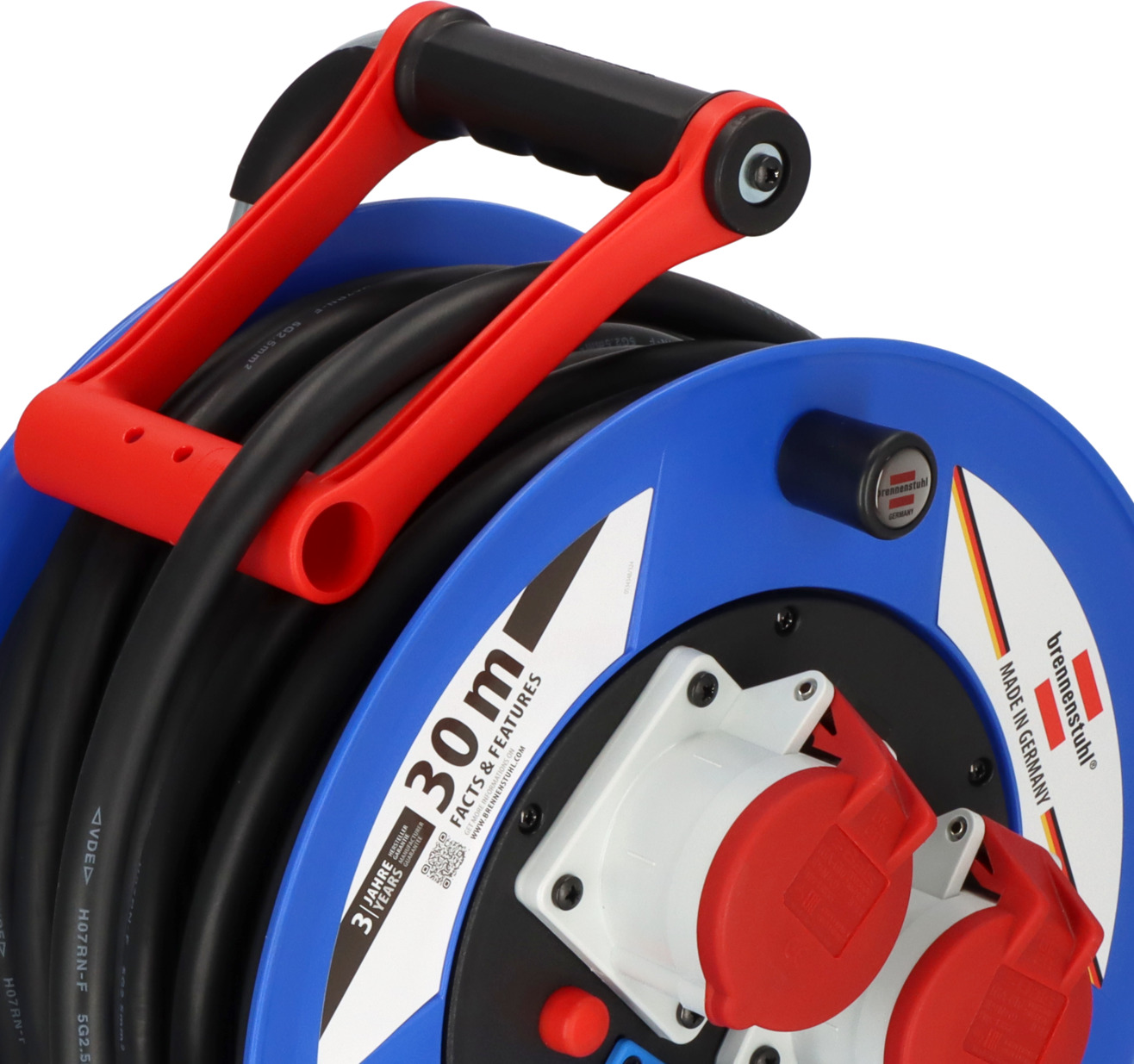 Garant CEE IP44 Industrie-/Baustellen-Kabeltrommel (30m Kabel in schwarz, Spezialkunststoff, Baustelleneinsatz und ständiger Einsatz im Außenbereich, Made in Germany)