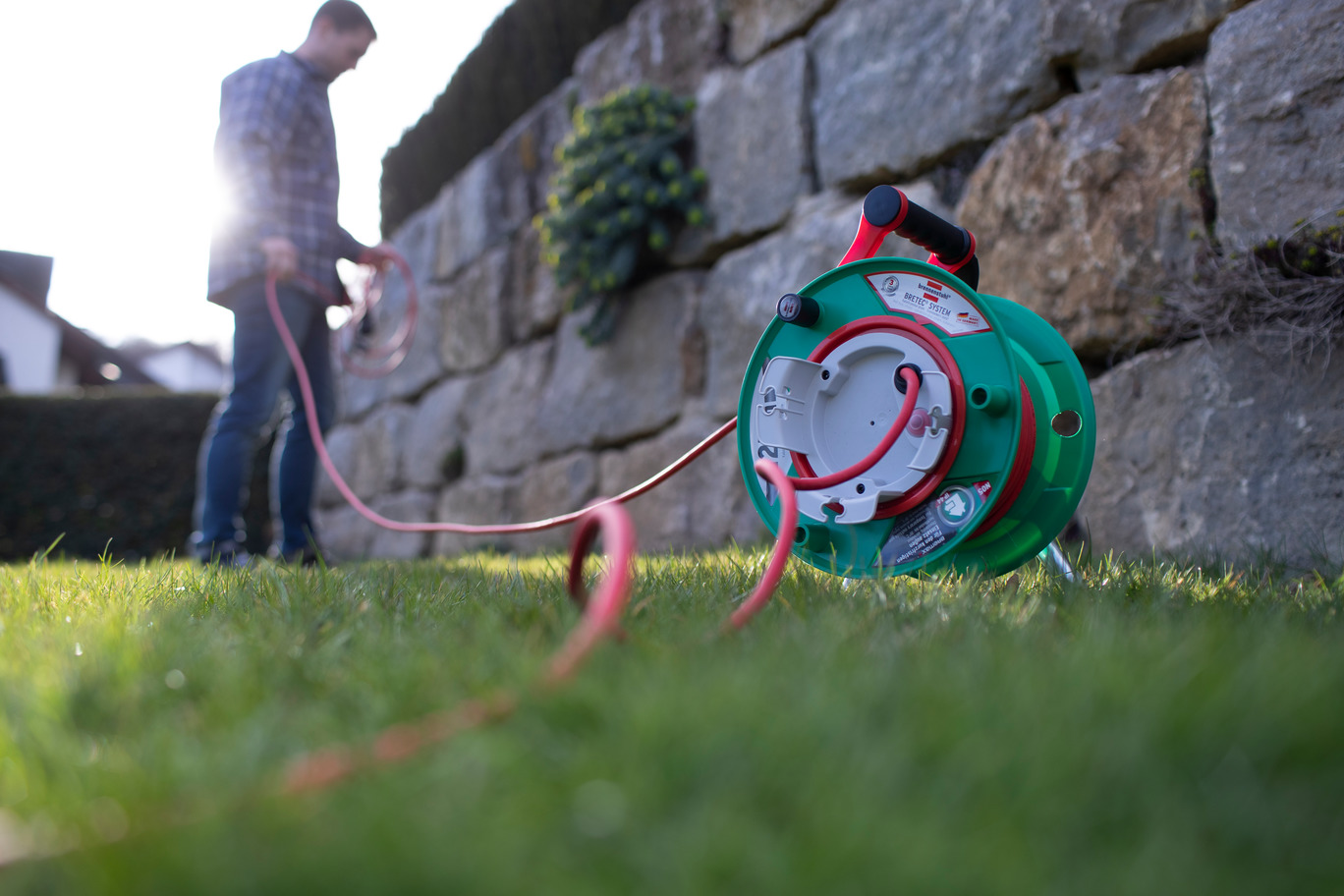 - Verlängerungskabeltrommel mit Stecker und Kupplung eignet sich bestens als praktische Stromquelle für diverse Gartenarbeiten, wie beispielsweise für das Rasenmähen, Hecken schneiden usw.