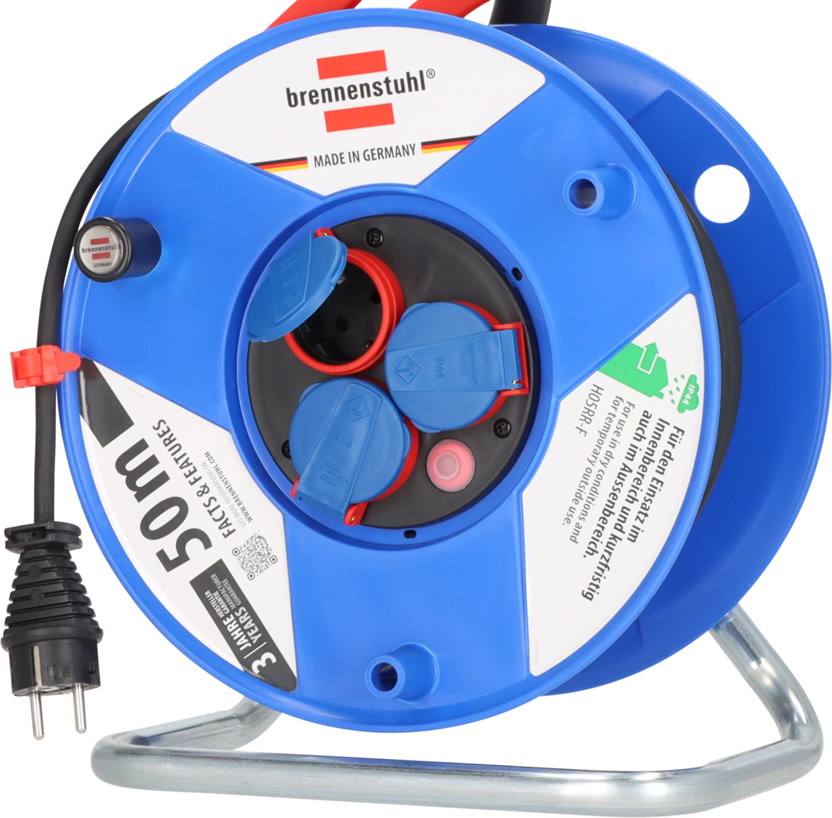 Lieferumfang: 1x Garant IP44 Kabeltrommel mit 50m Kabellänge in der Farbe blau - in bester Qualität von brennenstuhl®