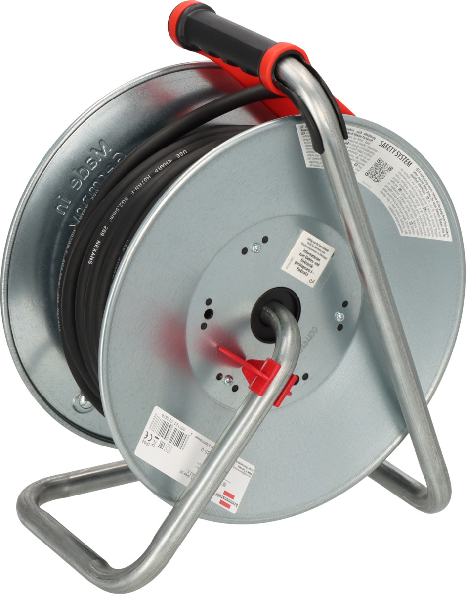 Ergonomischer Handgriff mit Achse für die perfekte Kabelführung beim Auf- und AbrollenKabellänge: 25mKabelbezeichnung: H05VV-F 3G1,5Kabelqualität: KunststoffKabelfarbe: schwarzTrommeldurchmesser 240mmTechnische Daten