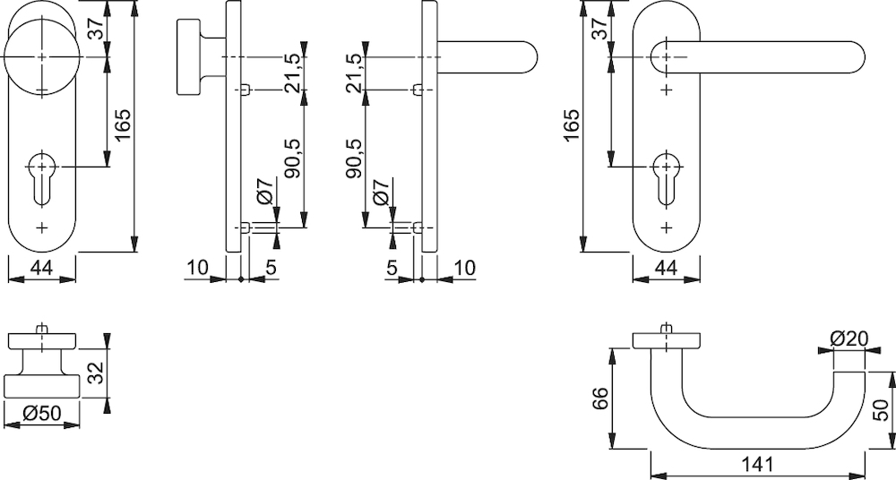 - Lagerung: außen Knopf fest; innen Türgriff fest/drehbar, Rückholfeder, HOPPE-Steckgriff-Verbindung mit Kugel-Arretierung Sertos®, wartungsfreies Gleitlager