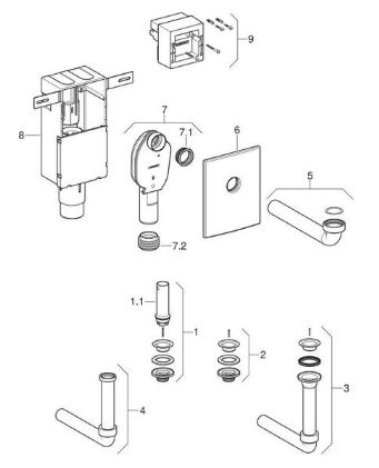 • Geberit Set UP-Geruchsverschluss für Waschbecken, Abgang horizontal