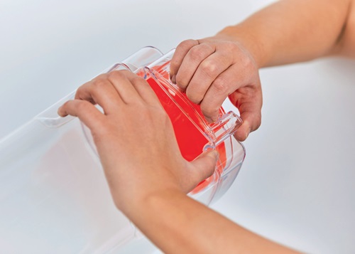gut sichtbare Spenderstation für Gehörschutzstöpsel, dadurch auffällig und erhöhte Trageakzeptanz · einfach drehen und der Stöpsel fällt in die Hand