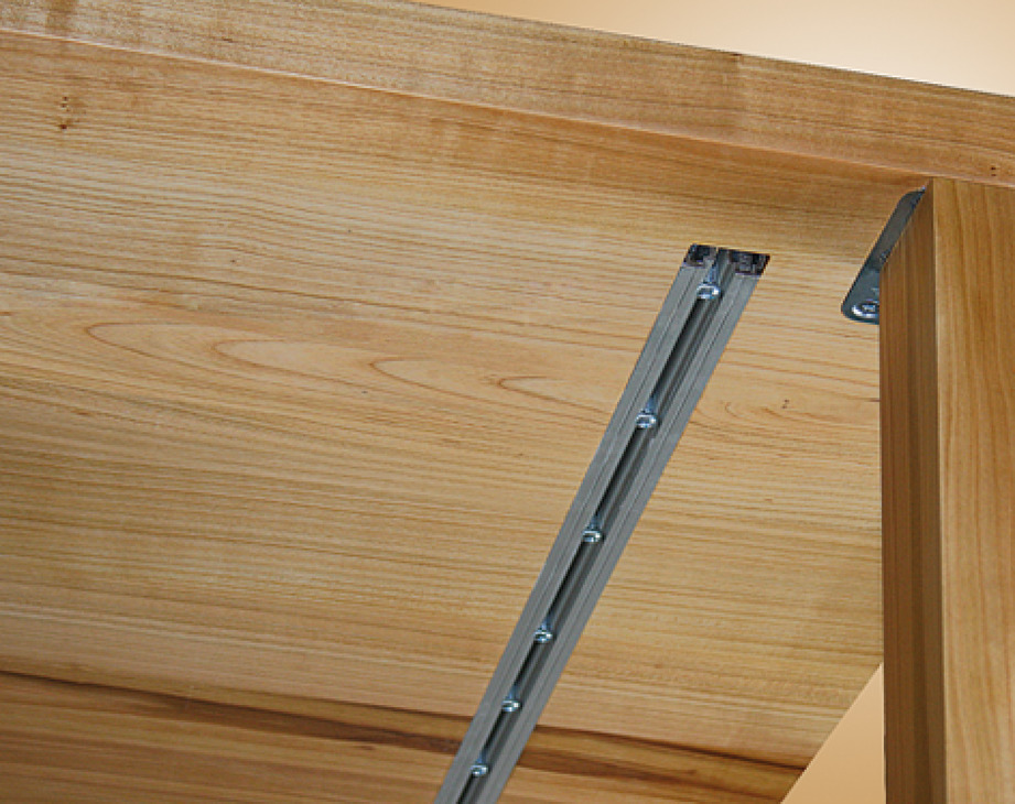 ...für massive Tischplatten ab 30 mm Dicke zu empfehlen. Je nach Länge des Tisches werden 2-5 Gratleisten quer in die Platte eingefräst und halten diese gerade, wenn kein Tischgestell zur festen Verschraubung der Tischplatte vorhanden ist.