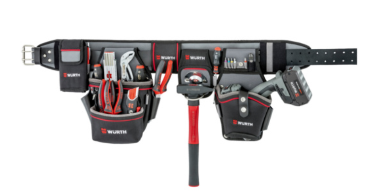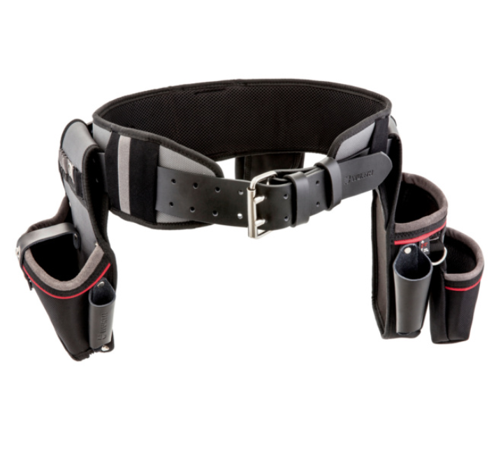 Gürteltasche mit zwei großen Staufächern und einem Bohrschrauber-Halter zum Bereitstellen von Werkzeugen und Materialien direkt am Mann.