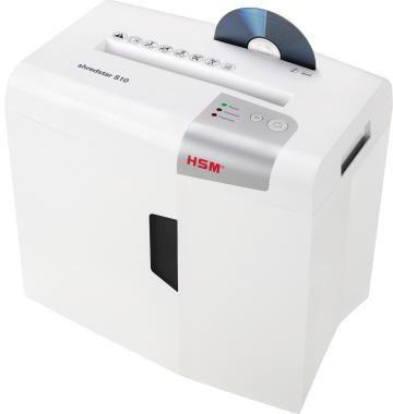 Produktinformationen "HSM Aktenvernichter HSM® shredstar S10 P-2 Papier Heftklammern Büroklammern Kreditkarten CDs/DVDs Streifenschnitt weiß/silber"