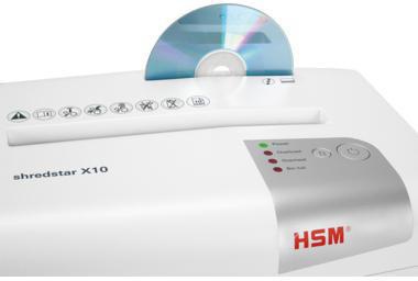 Produktinformationen "HSM Aktenvernichter HSM® shredstar X10 P-4 Papier Heftklammern Büroklammern Kreditkarten CDs/DVDs Partikelschnitt weiß/silber"