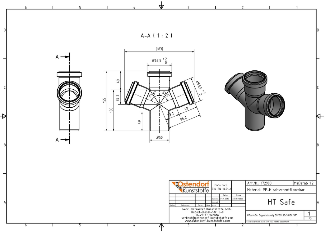 Produktinformationen "HT Doppelabzweig 67° DN 50-50-50"