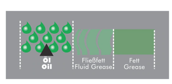 - Sehr gut haftendes Schmiermittel, das bei drehenden und rotierenden Teilen nicht abschleudert
