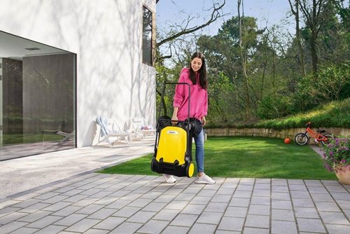 Ob Blütenblätter im Frühling · Sand im Sommer · Laub im Herbst oder Streugut im Winter: Die effektive und ergonomische Kehrmaschine S 4 Twin von Kärcher sorgt ganzjährig in Rekordtempo für glanzvolle Zeiten rund um Haus und Garten. Mit ihrer kräftigen Kehrwalze · ihren 2 Seitenbesen und einer Kehrbreite von insgesamt 680 Millimetern kehrt sie mühelos Flächen von bis zu 2400 m² pro Stunde. Die Maschine befördert das Kehrgut direkt in den 20 Liter fassenden Kehrbehälter. Die langen Borsten der Seitenbesen sorgen für gründliche Sauberkeit bis zum Rand. Der stufenlos höhenverstellbare Schubbügel lässt sich optimal auf die Körpergröße des jeweiligen Anwenders anpassen. Dank des verwendeten Bajonettverschlusses kann bei der Höhenverstellung auch keine Schraube mehr verloren gehen. Die Kehrmaschine kann bei Bedarf ohne Bücken ganz einfach durch eine Trittfläche am Rahmen komplett umgeklappt und am Handgriff getragen werden – für eine platzsparende Aufbewahrung. Einzigartig ist die werkzeuglose Seitenbesenanbringung. So ist die Kehrmaschine im Nu einsatzbereit. Der Kehrgutbehälter lässt sich leicht entnehmen und kann ohne Schmutzkontakt sicher abgestellt und entleert werden. Vorteile: Praktische Verschlusskappe für Seitenbesen · Einfache Entnahme des Kehrgutbehälters · Komfortable Trittfläche · Praktischer Tragegriff · Höhenverstellung mit Bajonettverschluss · Selbststehender Kehrgutbehälter · Großer Kehrbehälter · Große Kehrbreite · Randnahes Kehren. Top Features: Ideal für kleinere Außenflächen · Thermogriff am Schubbügel · 2 Seitenbesen für erweiterte Arbeitsbreite. Anwendung: Gehwege · Straßen · Hof- und Garageneinfahrten sowie Wege und Flächen rund ums Haus. Für sämtliche Schmutzarten – das ganze Jahr über. Reinigung von Garagen und Kellern im Haus