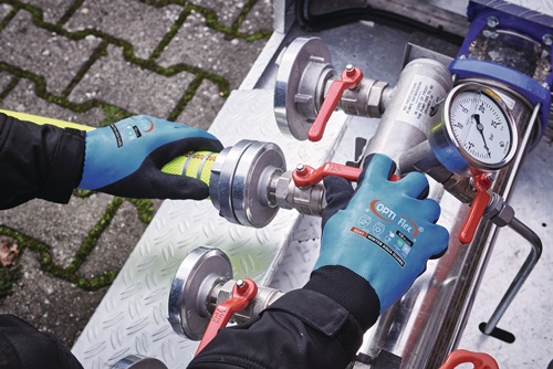 nach EN 388 · EN 511 · Kat. II · Material: Träger: außen: 7G Polyester, innen: 10gg Polyacryl, schwarz · 1. Beschichtung: Latex, vollbeschichtet, glatt, blau, 2. Beschichtung: Latex, Handinnenfläche, gesandet, schwarz · sehr flexibel · sehr guter Schutz in nass-kalter Umgebung · Kälteschutz bis max. -30 °C · sehr gute Griffsicherheit im Trocken- sowie Nassbereich durch die gesandete Latexbeschichtung · lebensmittelgeeignet · touchscreenfähig · OEKO-TEX® STANDARD 100 , Zert.-Nr. 15.0.69098