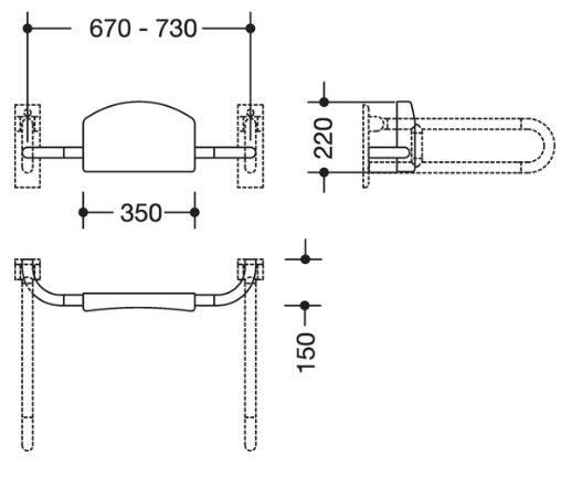 - Montage an Stützklappgriffen oder Wandstützgriffen mit Wandplatte, bauseits verstellbar