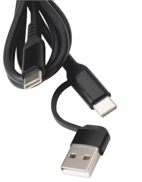 - Ladekabel mit USB-A/USB-C Adapter