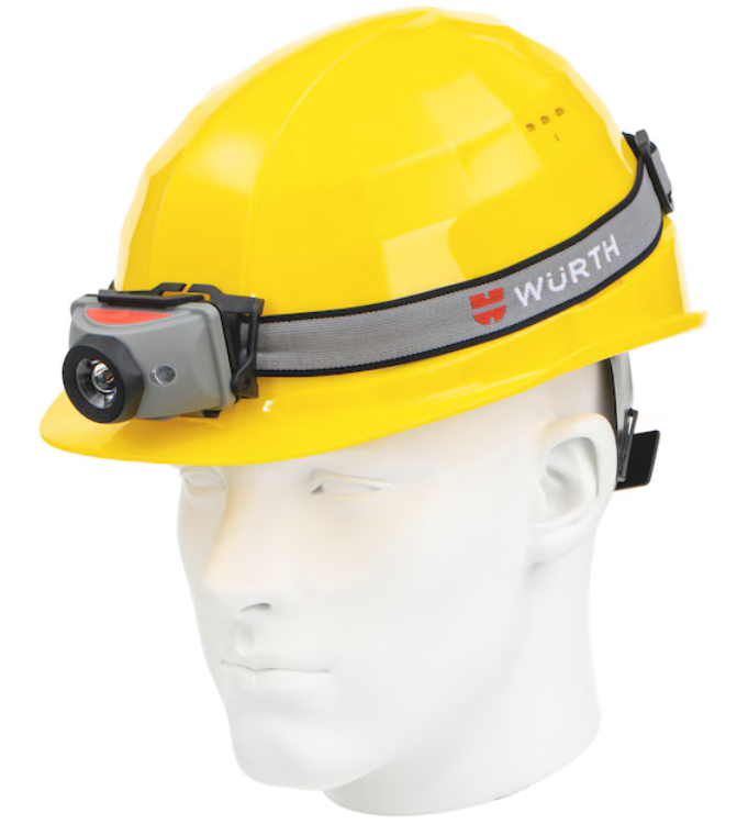 - Stirnband mit innenliegender Gummierung – guter Halt auf Bauhelmen