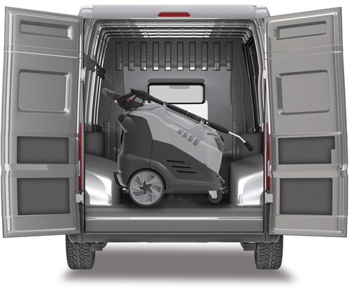 · Aufbewahrung: Fächer für Handspritzpistole, Strahlrohr und Zubehör