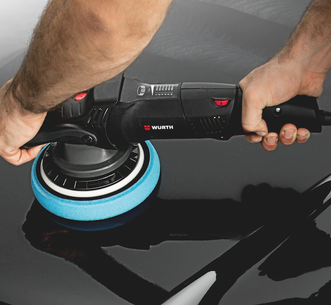 Vor Gebrauch gut schütteln. Die Oberflächen der gewählten Polierscheibe gleichmäßig mit der Paste benetzen und eine kleine Menge auf die zu bearbeitende Fläche geben. Polierpad eben auf die Stelle auflegen und Maschine starten. Mit bestimmtem Druck bei 1500 - 2000 U/min die Fläche bearbeiten bis die Schleifspuren bzw. die Lackirritationen entfernt sind. Abschnittsweise vorgehen! Politurreste mit Mikrofasertuch entfernen.