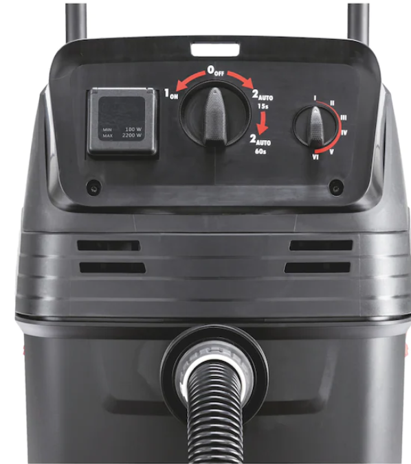 - Steckdose mit Hall Sensor für automatische Powertool-Erkennung, damit lässt sich der Sauger über ein angeschlossenes Elektrowerkzeug ansteuern.
