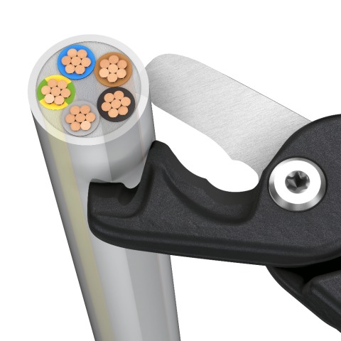 Hauptschneide hält kleinere und größere Kabel beim Schnitt stets maximal