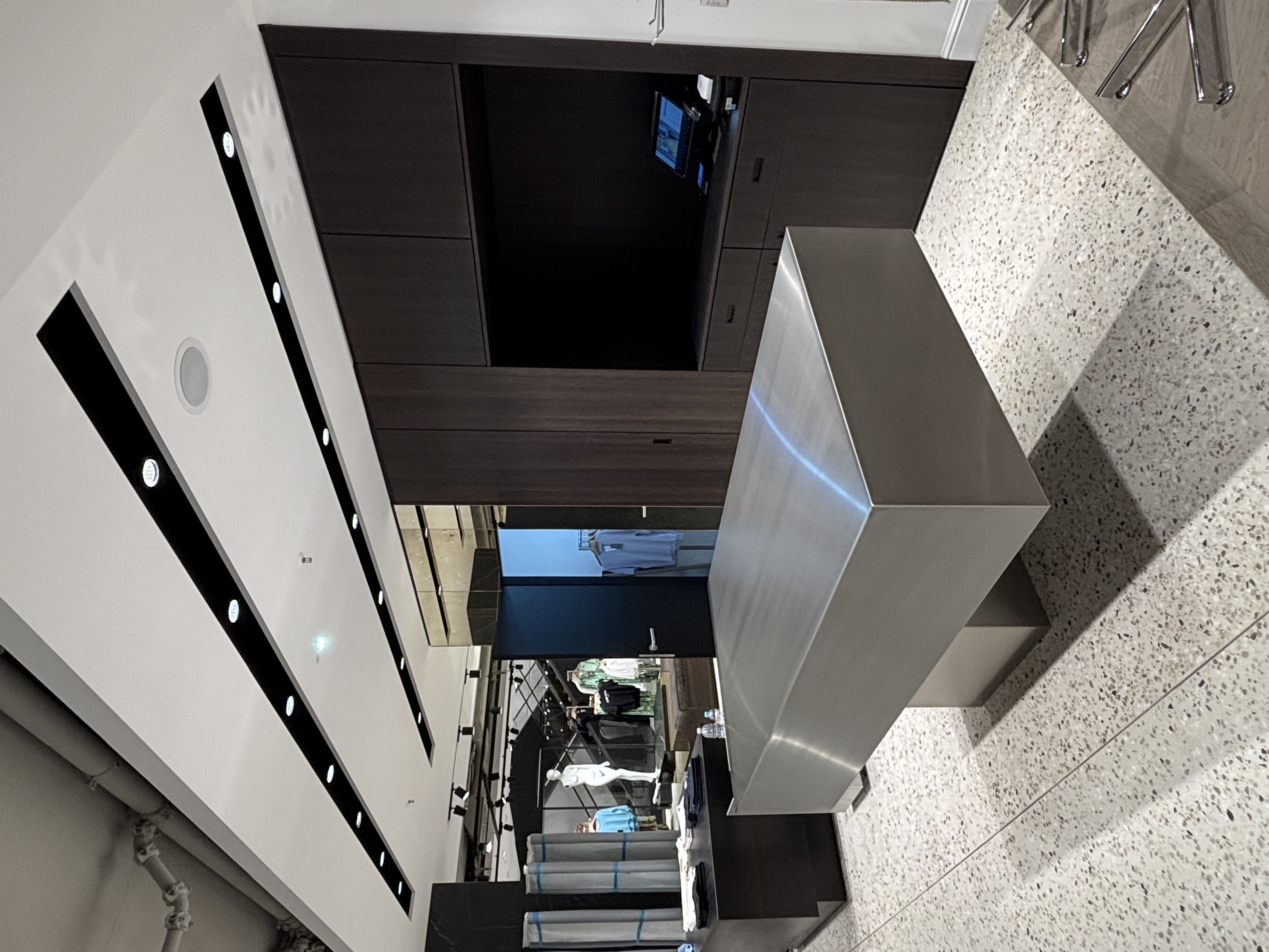 Diese Kassentheke aus gebürstetem Edelstahl steht für puristisches Design und höchste Materialqualität. Mit ihrer klaren, geometrischen Formensprache bringt sie moderne Eleganz in jeden Verkaufsraum und fügt sich nahtlos in zeitgemäße Einrichtungskonzepte ein.