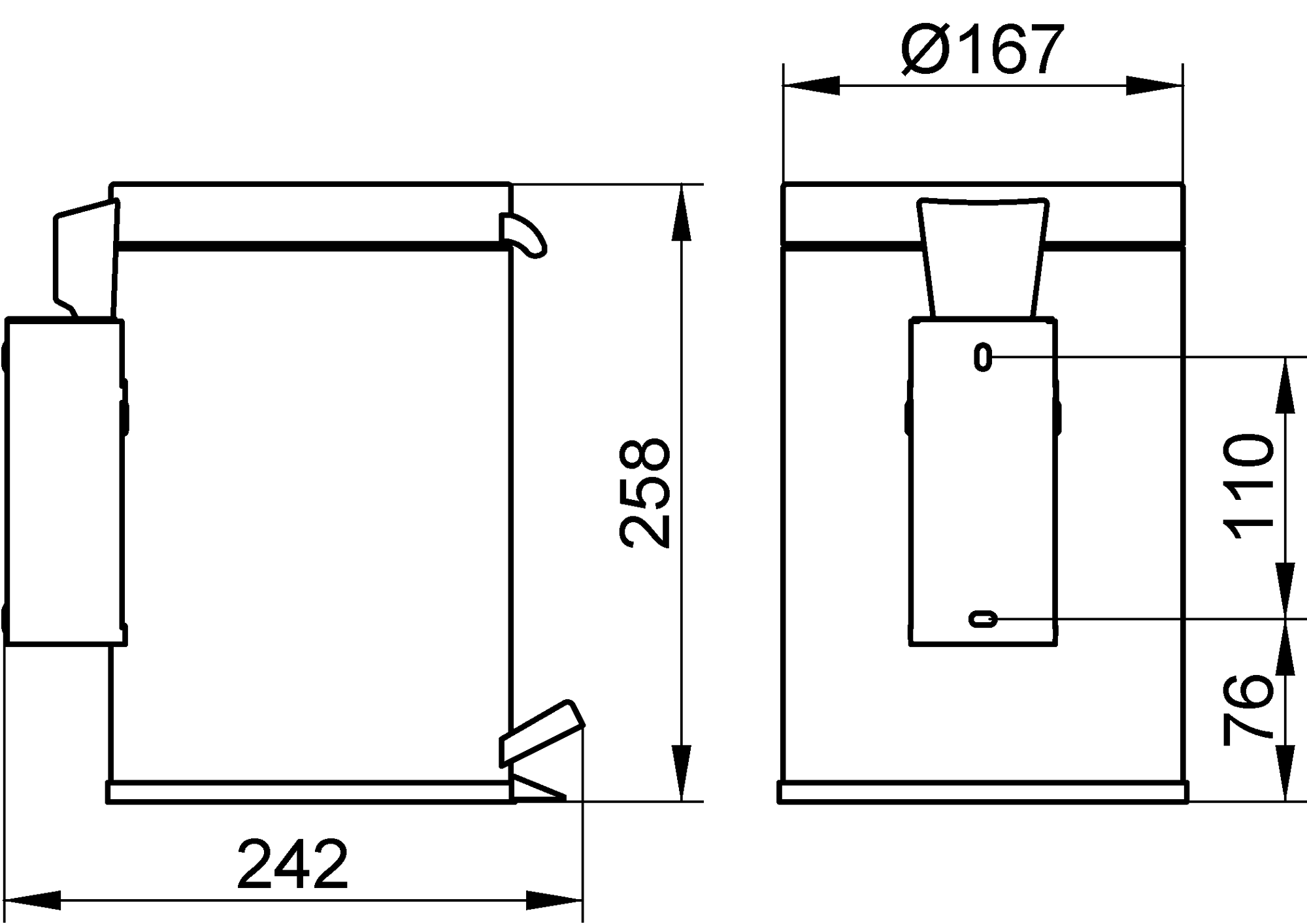 - Deckel: Integriert für hygienische Entsorgung