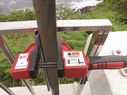 Gehäuse aus hochwertigem Kunststoff · Coaxial System mit Mehrkomponenten Kunststoffgriff, spannt an der Schiene · Spannkraft bis zu 2000 N · Schienenquerschnitt 20 x 6 mm