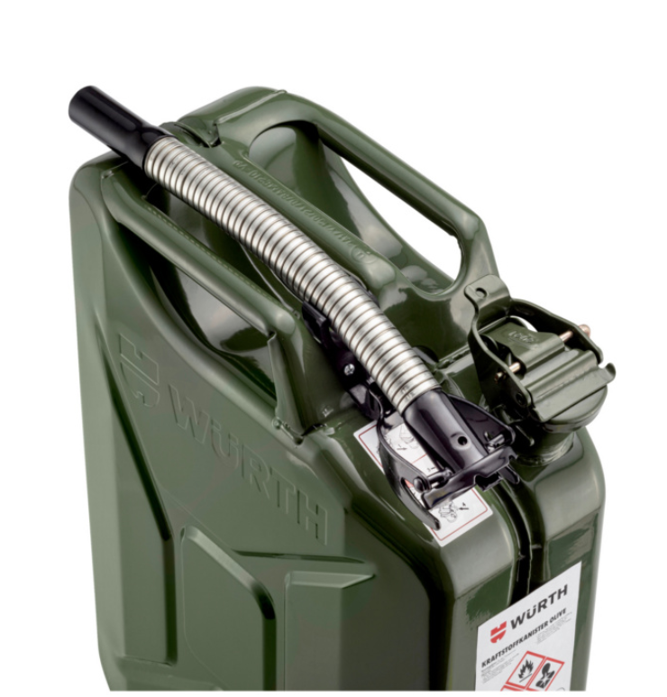 Der Kraftstoff kann Fremdkörper und Schmutz enthalten. Verwenden Sie beim Tanken immer ein Kraftstofffilter, damit diese Stoffe nicht in den Tank gelangen können. Wir empfehlen als Zubehör nur den Würth flexiblen Kraftstoff-Ausgießer zu verwenden. Diese Würth Kraftstoff-Ausgießer sind mit einem eingebauten Filtersieb versehen und halten bedenkliche Fremdkörper und Verschmutzungen sicher zurück. Ausgießer sind jeweils für Benzin unter Art.-Nr. 0891420741und für Diesel unter Art.-Nr. 0891420742 erhältlich. Die Ausgießer können zum Transport problemlos am Kanister angebracht werden. Dafür befinden sich bereits Bohrungen am Kanister für den mit dem Ausgießer mitgelieferten Halteclip.