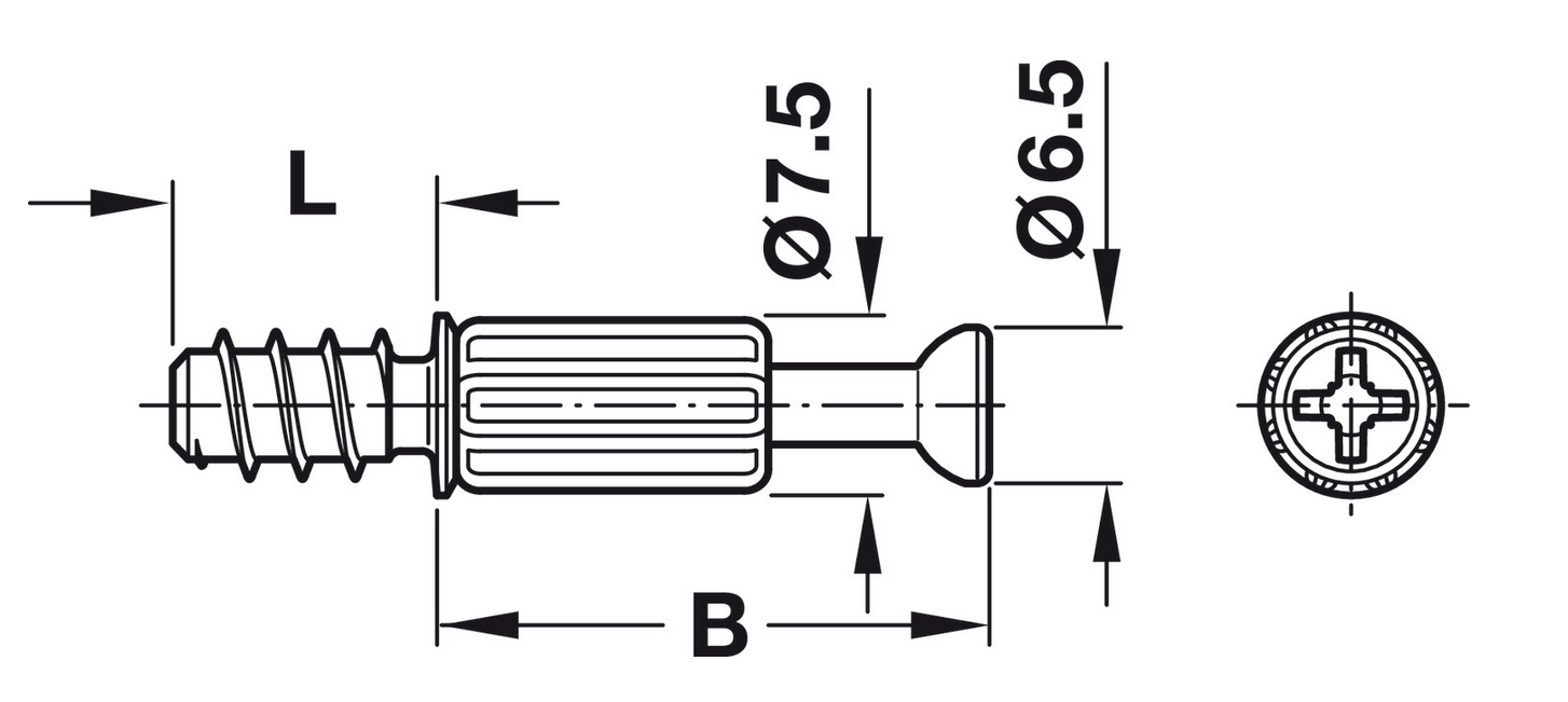 Datenblatt "L: 8,5 mm Verbindungsbolzen, S200, reduziertes Spiel, System Minifix®, für Bohrloch-⌀: 5 mm (ST)"