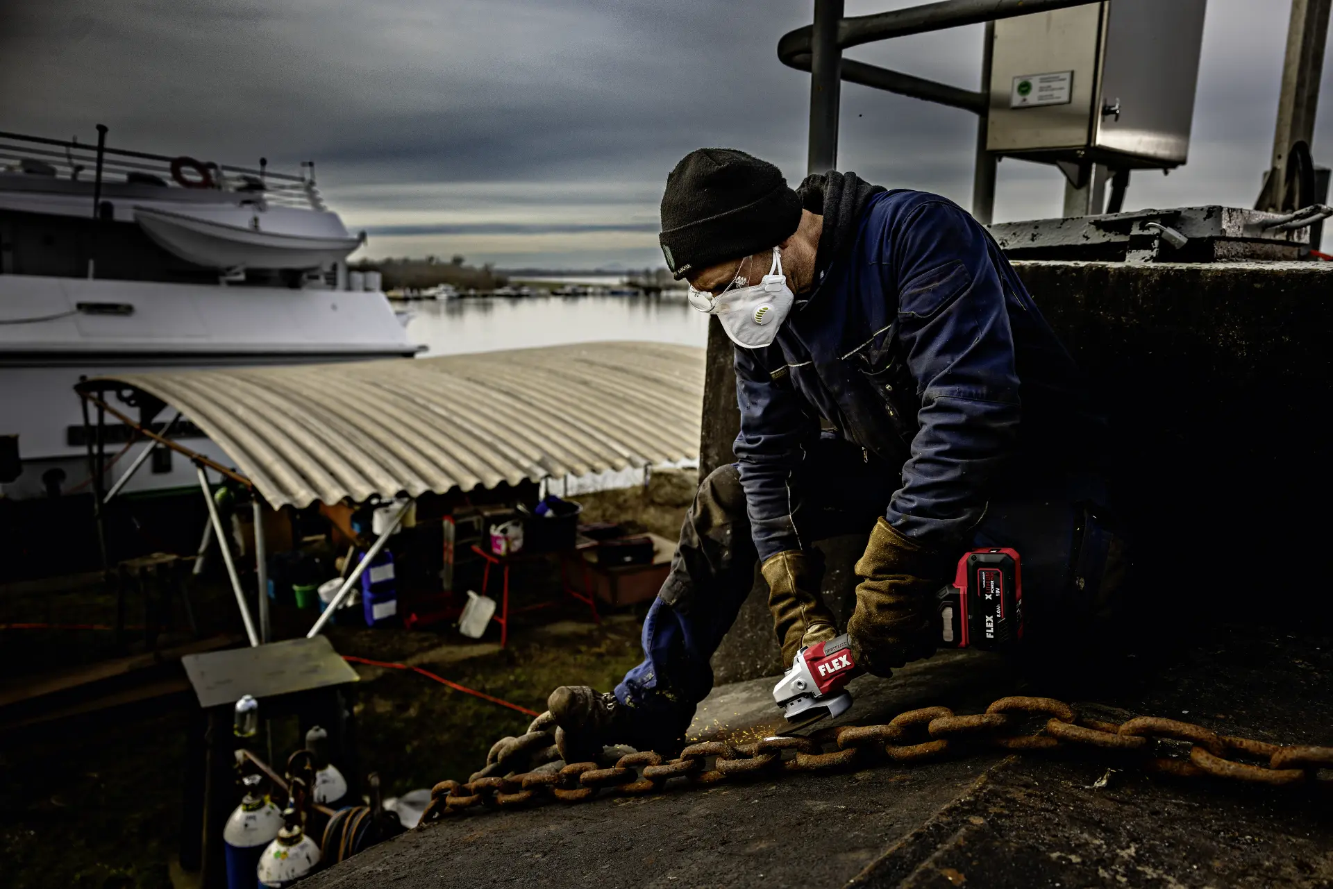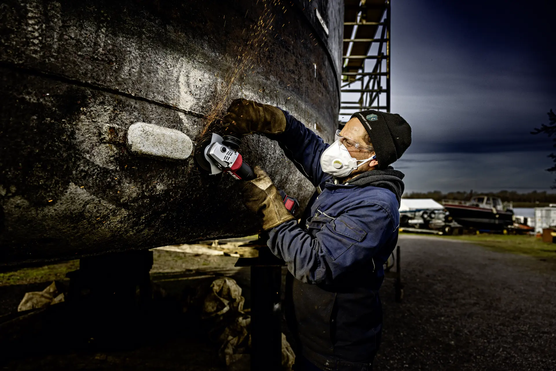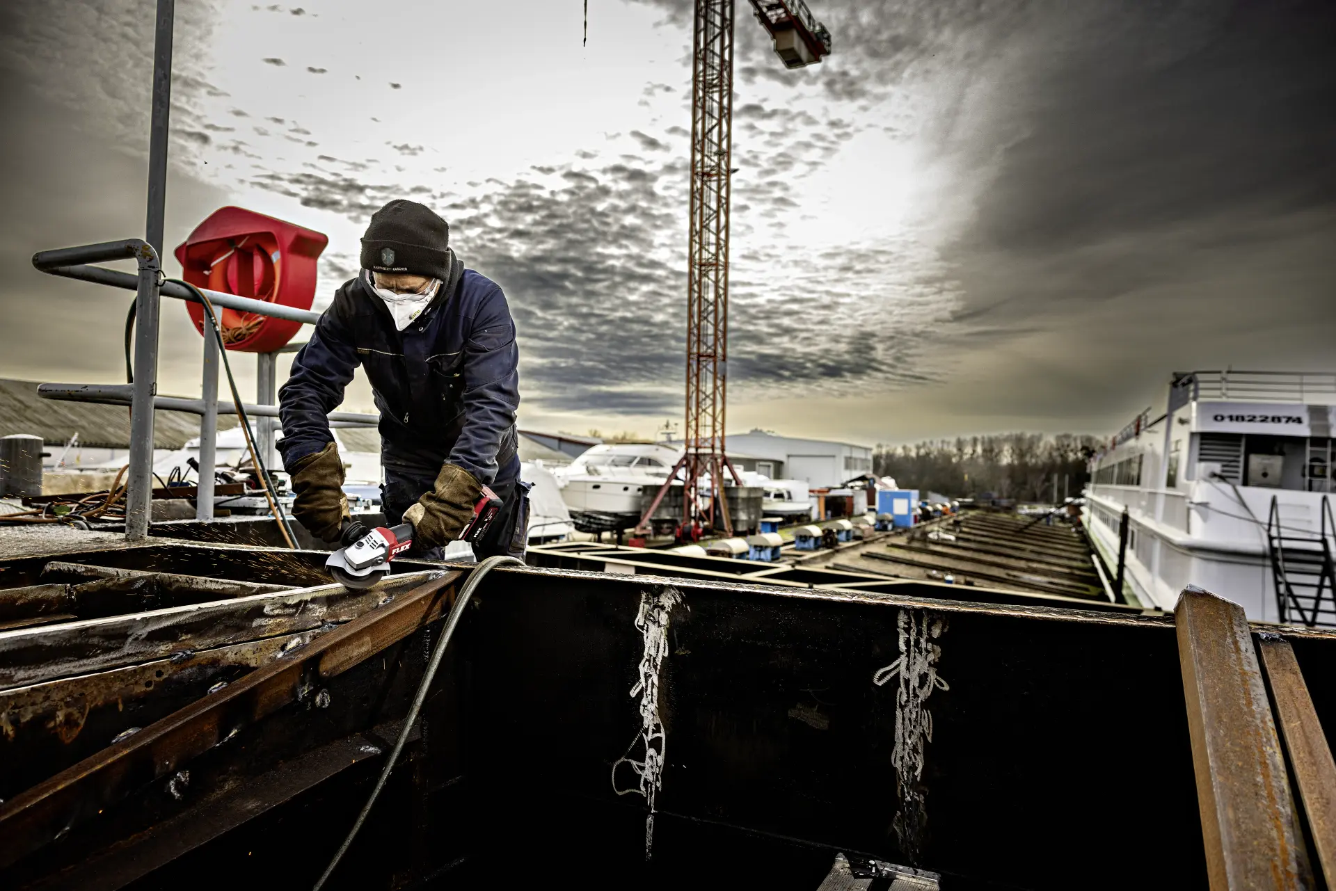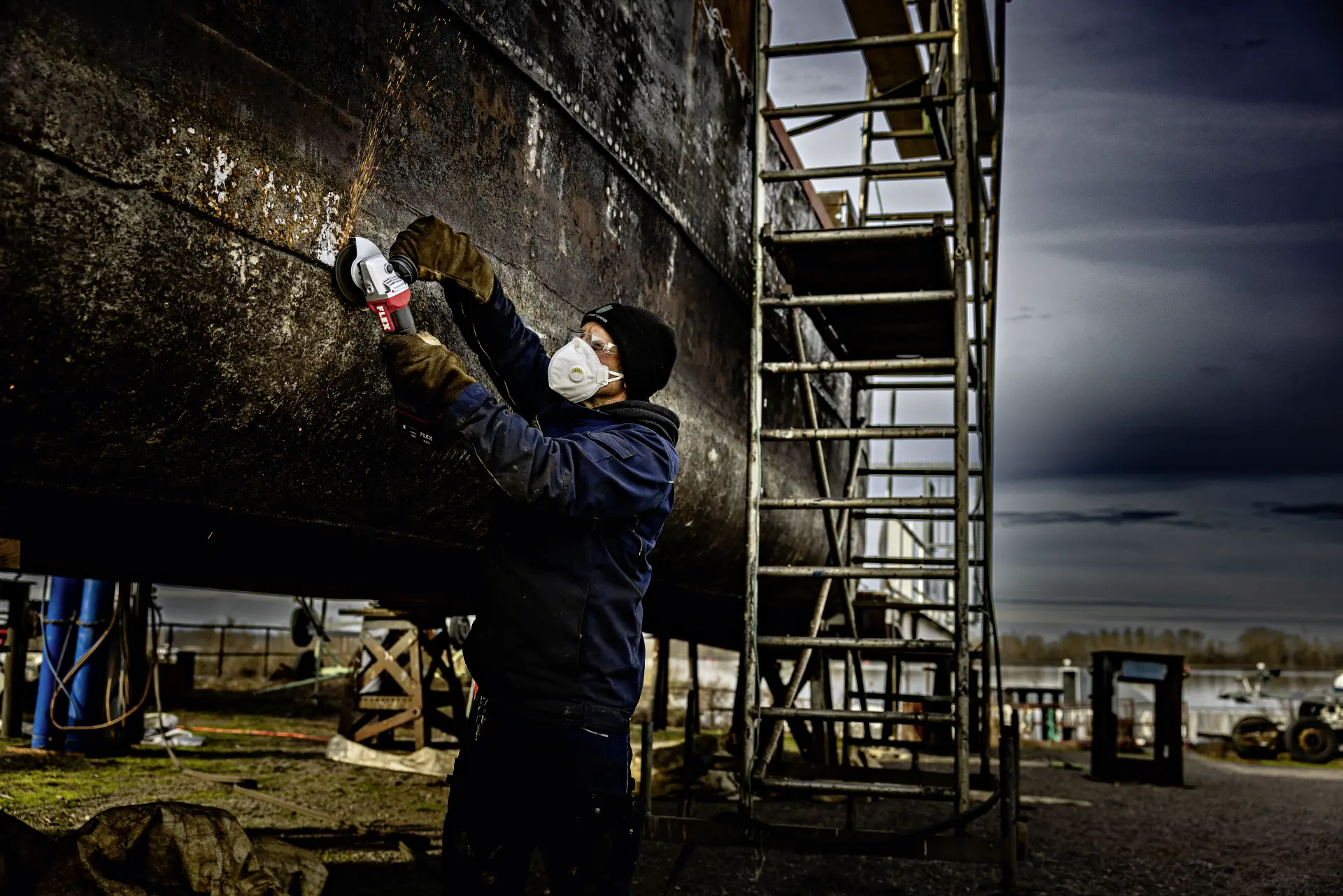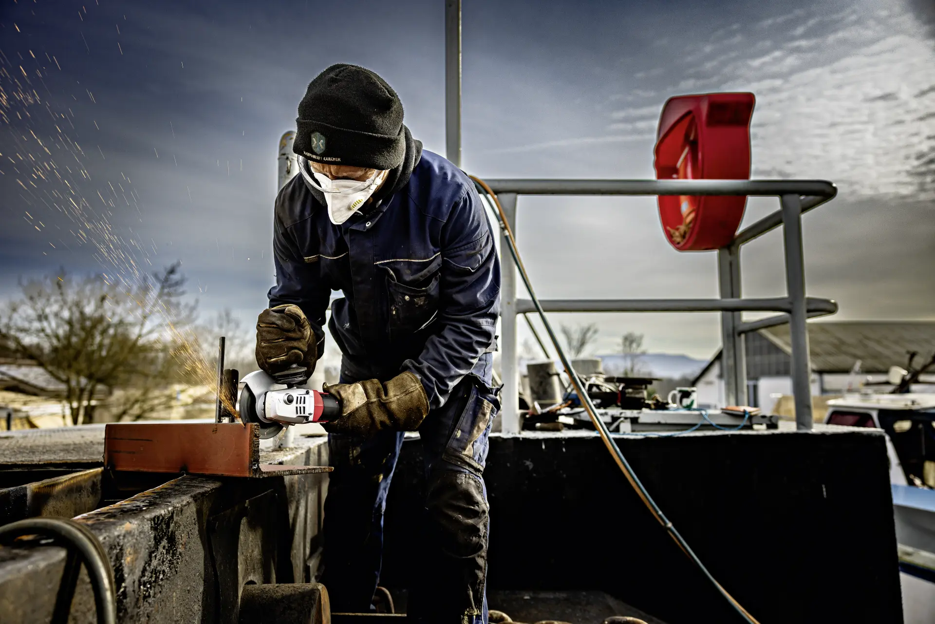 - in-/Ausschalter mit Totmann-Funktion Leistungsstarker Winkelschleifer für industrielle Anwendungen, besonders zum Trennen und Schleifen von Metall Werkzeuglos verstellbare Schutzhaube Spindelarretierung