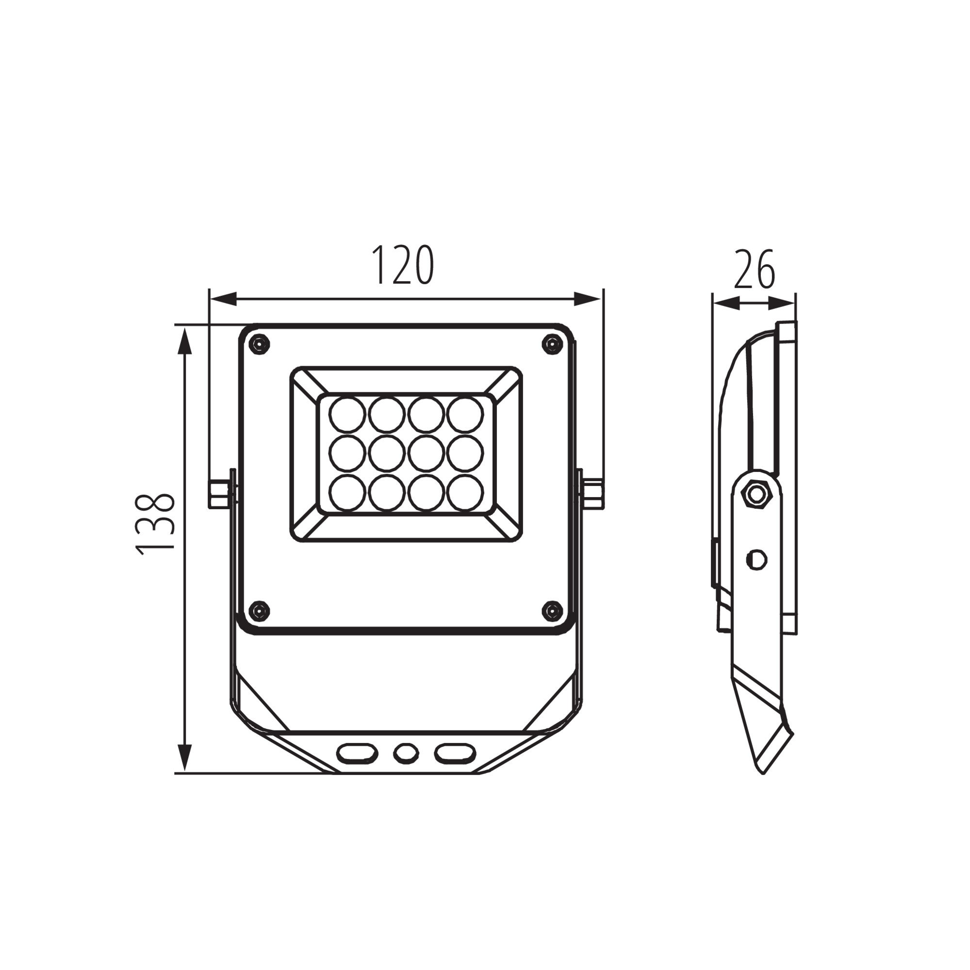 Bewegungsmelder. Der winkelverstellbare Montagebügel ermöglicht eine