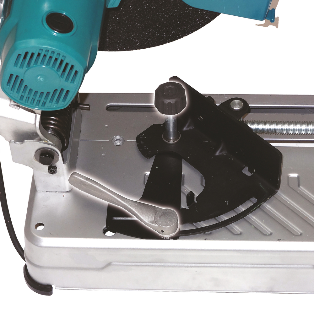 Eine 2.200 W Trennschleifmaschine für präzises Trennen von Metall. Mit Tragegriff für einfachen Transport und guter Funkenflugführung. Mit Schnellspannvorrichtung und einstellbarer Eintauchtiefe. Schneidet bis zu 194 mm mit einer 355-mm-Trennscheibe. Werkzeuglos verstellbarer Schraubstock für Gehrungsschnitte bis 45°.