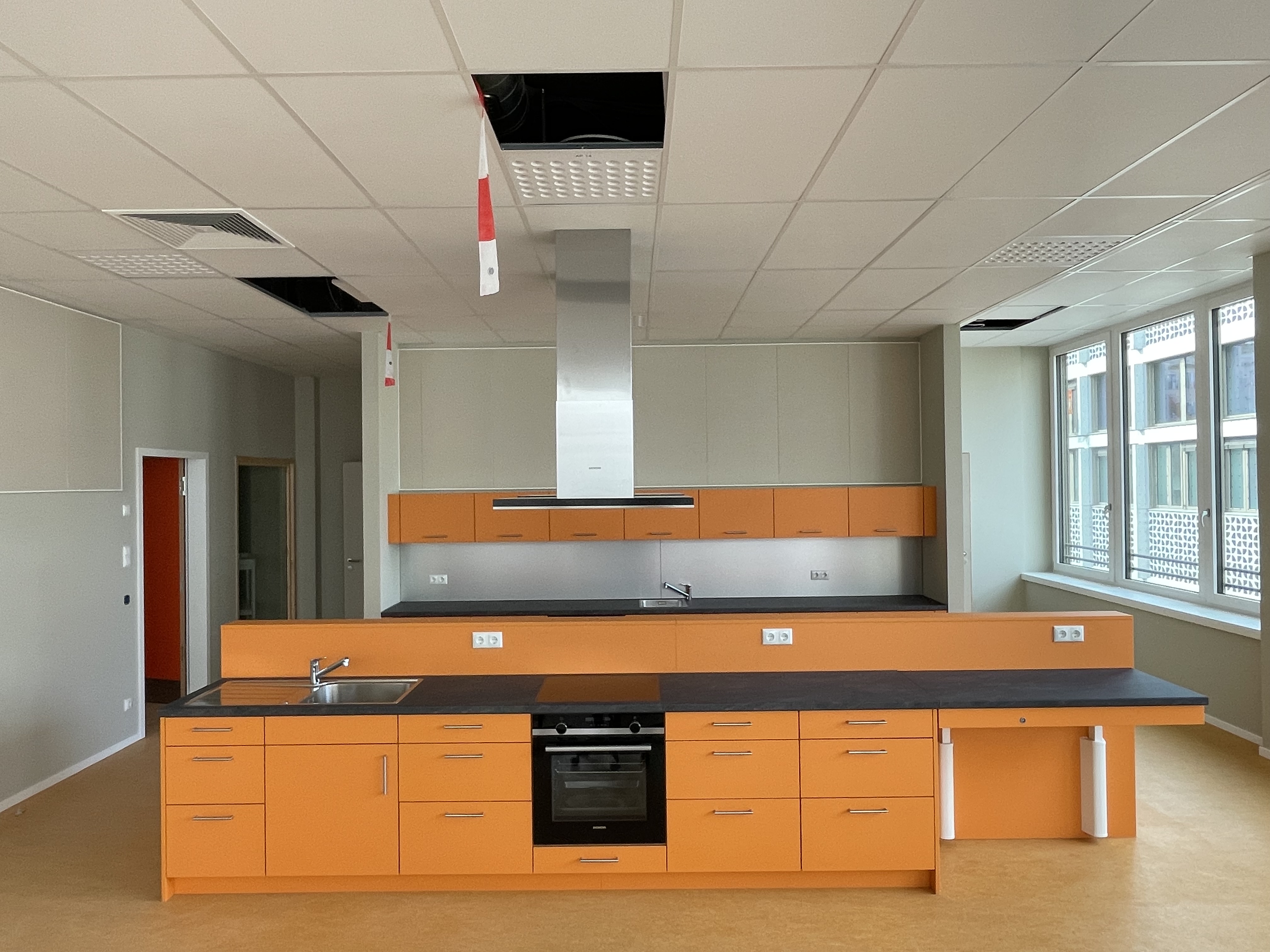 Diese Küche wurde in Berlin gebaut und dient nur zu Veranschaulichung. Lehrküchen von ungrund werden individuell nach Leistungsverzeichnis oder ihren persönlichen Anforderungen hergestellt.