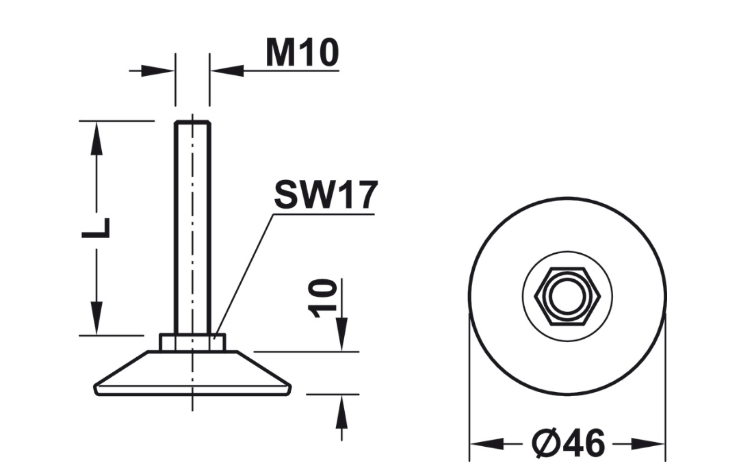 Verstellschraube, Gewinde M10, starr, mit Kunststoff-Fußteller