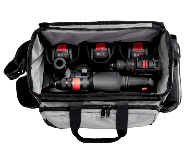 - 1 Außentasche mit Klettverschluss für Akku-Ladegarät