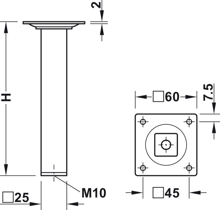 - Typ: Möbelfuß mit Befestigungsplatte