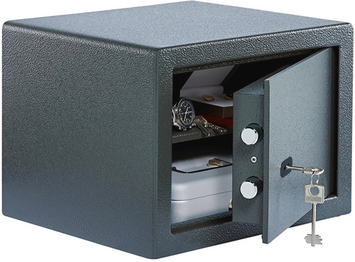robuster einwandiger Korpus · Tür doppelwandig · Verstärkte Riegelbolzen · Aufbohrschutz · für Wand- und Bodenbefestigung vorgerichtet (inkl. Befestigungsmaterial) · ideal für den Einbau in Schränke und andere Möbelstücke