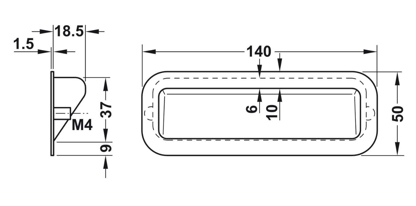 Produktinformationen "Muschelgriff Rechteckig | 140 x 50 mm"