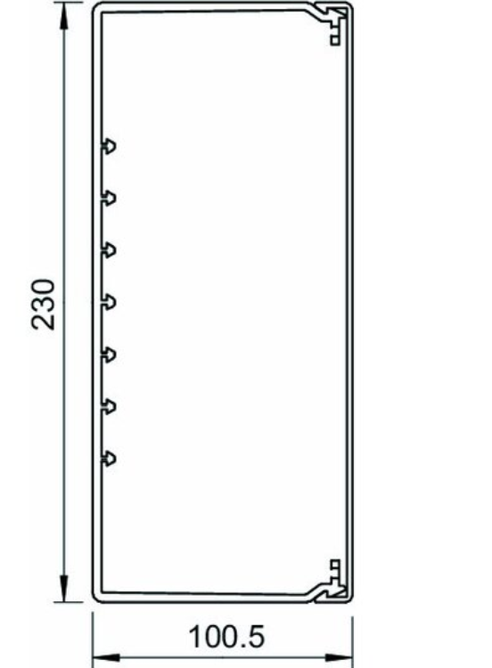Wandinstallationskanal als Kanalunterteil mit Bodenlochung und passendem Kanaloberteil.l. Formteile für Richtungsänderungen, Endstücke zum Verschließen der Kanalenden und Zubehörteile erhältlich. Geprüft nach DIN EN 50085-1. Werkstoff: Polyvinylchlorid, PVCFarbe: reinweiß, RAL 9010Mengeneinheit: MeterLänge: 2000ámmBreite: 230ámmHöhe: 100ámmBefestigungsart: BodenlochungAnzahl der festen Trennwände: 0Anzahl der steckbaren Trennwände: 3Ausführung des Deckels: loseKabelhalteklammer: jaKanalverbinder: neinSchutzfolie: neinHalogenfrei: neinNutzquerschnitt: 19702 mm² Fabrikat: OBO BettermannTyp: WDK100230RWArt.-Nr.: 6191355