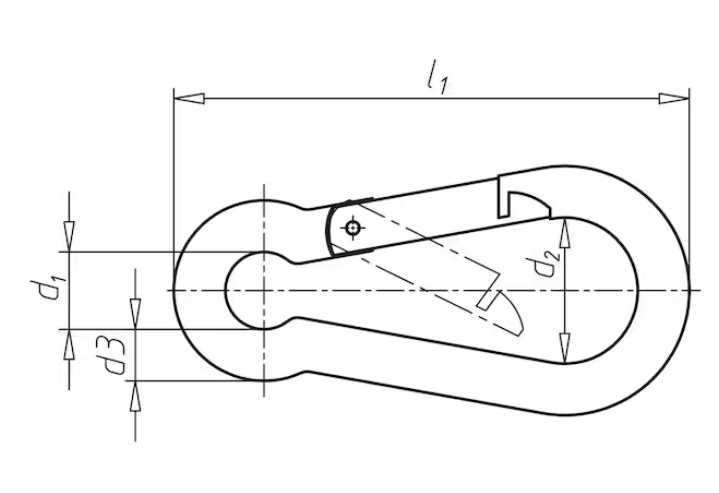 Karabinerhaken mit verdeckt liegender Schraubenfeder