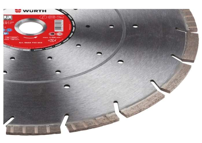 Sehr vielseitige, langlebige und wirtschaftliche Diamanttrennscheibe, jedoch speziell konzipiert für Asphalt, abrasive Baustoffe und Betonprodukte