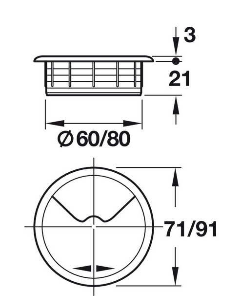Produktinformationen "Ø 60 mm Kabeldurchlass, rund, 71 oder 91 mm I Lichgrau"
