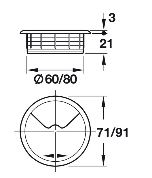Datenblatt " Ø 80 mm Kabeldurchlass, rund, 71 oder 91 mm I Schwarz"